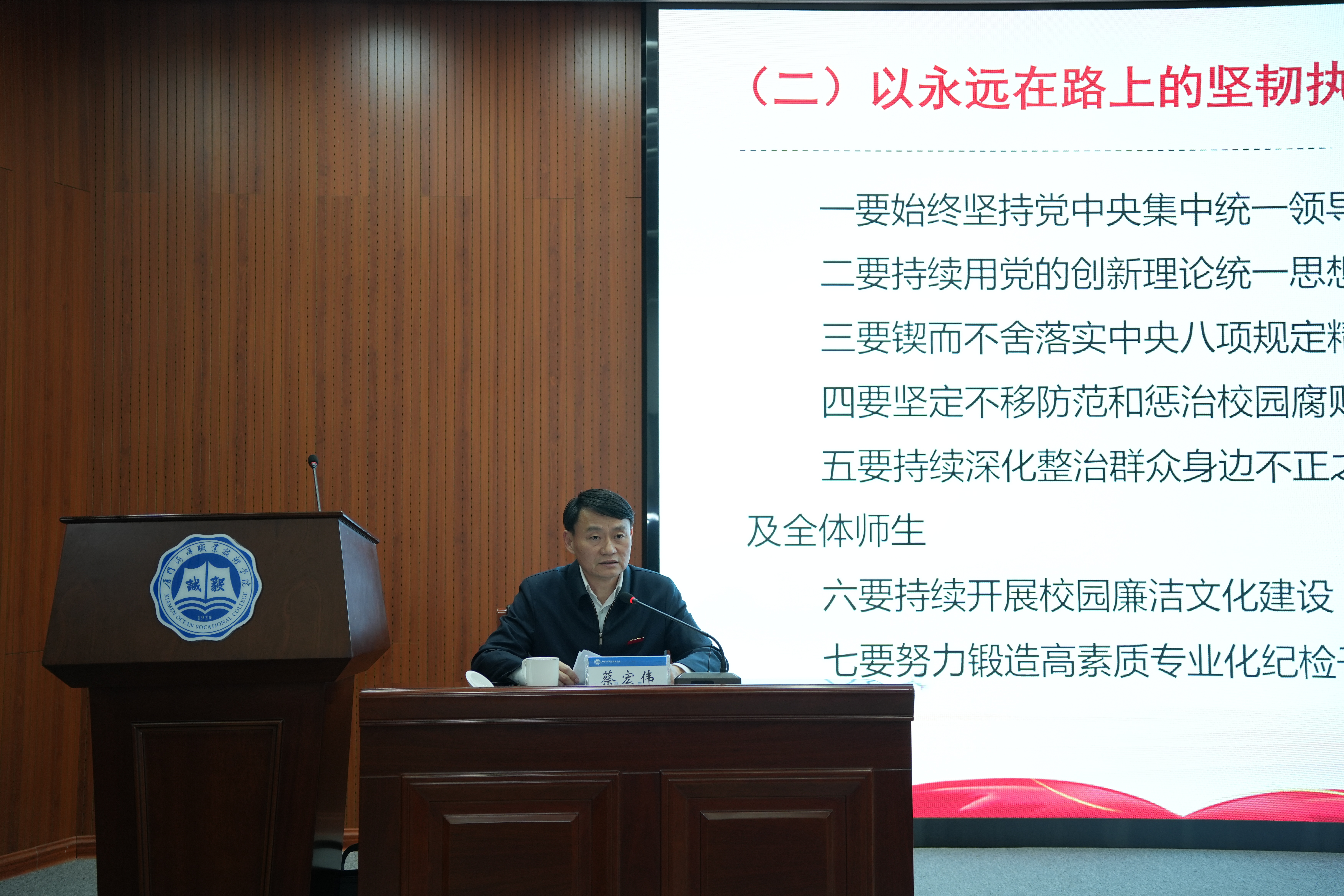 12月18日,校党委委员、纪委书记蔡宏伟在翔安校区T2报告厅以“认真履行全面从严治党职责,持续营造风清气正政治生态”为题,为机电3251班全体同学讲授专题思政课。蔡书记结合党的二十届四中全会精神,从如何提高政治站位、深化思想领悟和坚定信心决心恒心三个方面深入浅出地阐述了全会的重大意义、核心要义、丰富内涵以及履行责任。