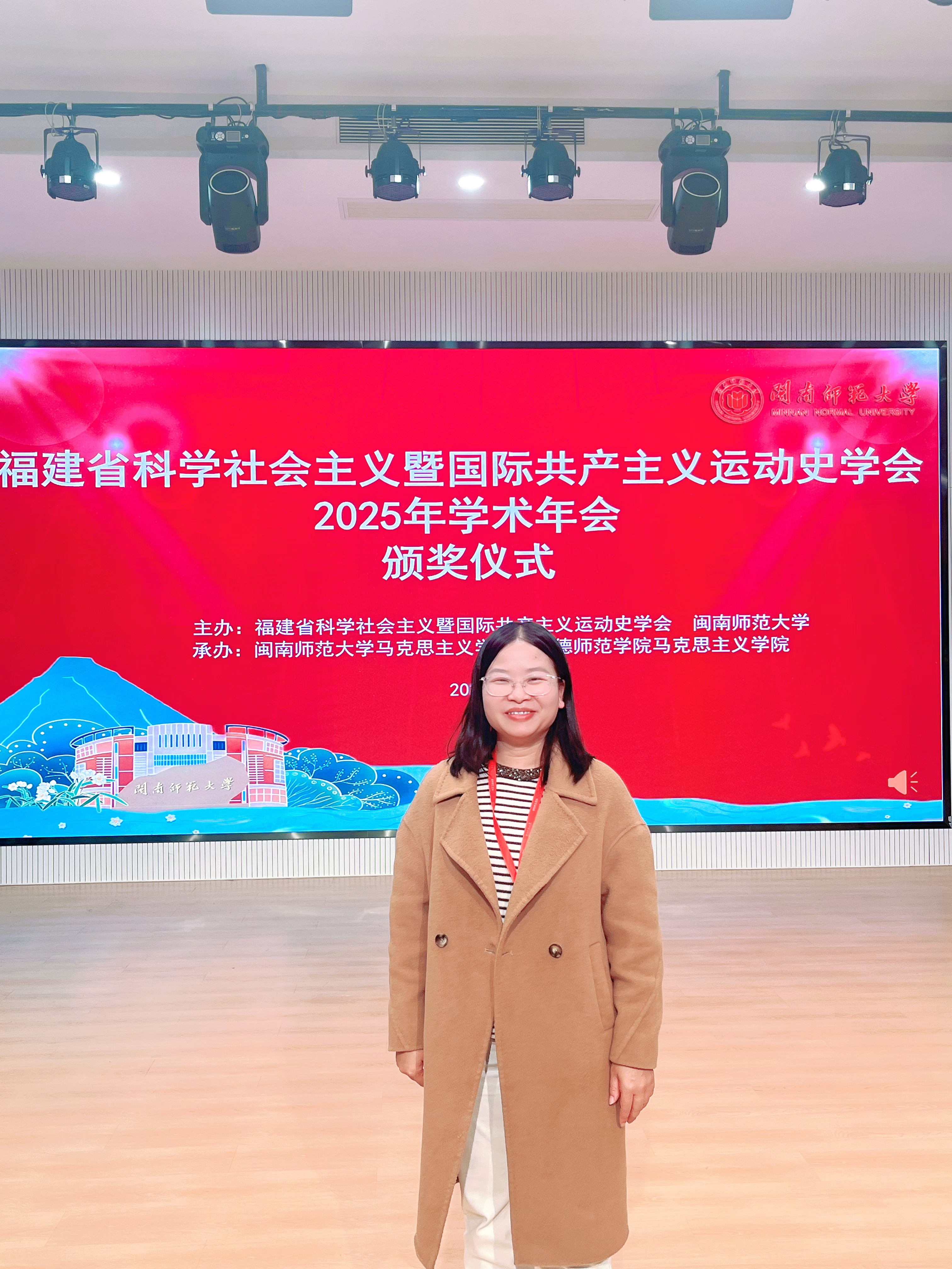 2025年12月27日,福建省科学社会主义暨国际共产主义运动史学会2025年学术年会在闽南师范大学顺利举行,本次年会论坛的主题是“学习贯彻党的二十届四中全会精神,在中国式现代化建设中奋勇争先。”我院郑昭华老师应邀参会,并在年会分论坛上作了题为《习近平文化思想引领福建文化标识体系构建研究》的发言,论文获评本届年会优秀学术论文。