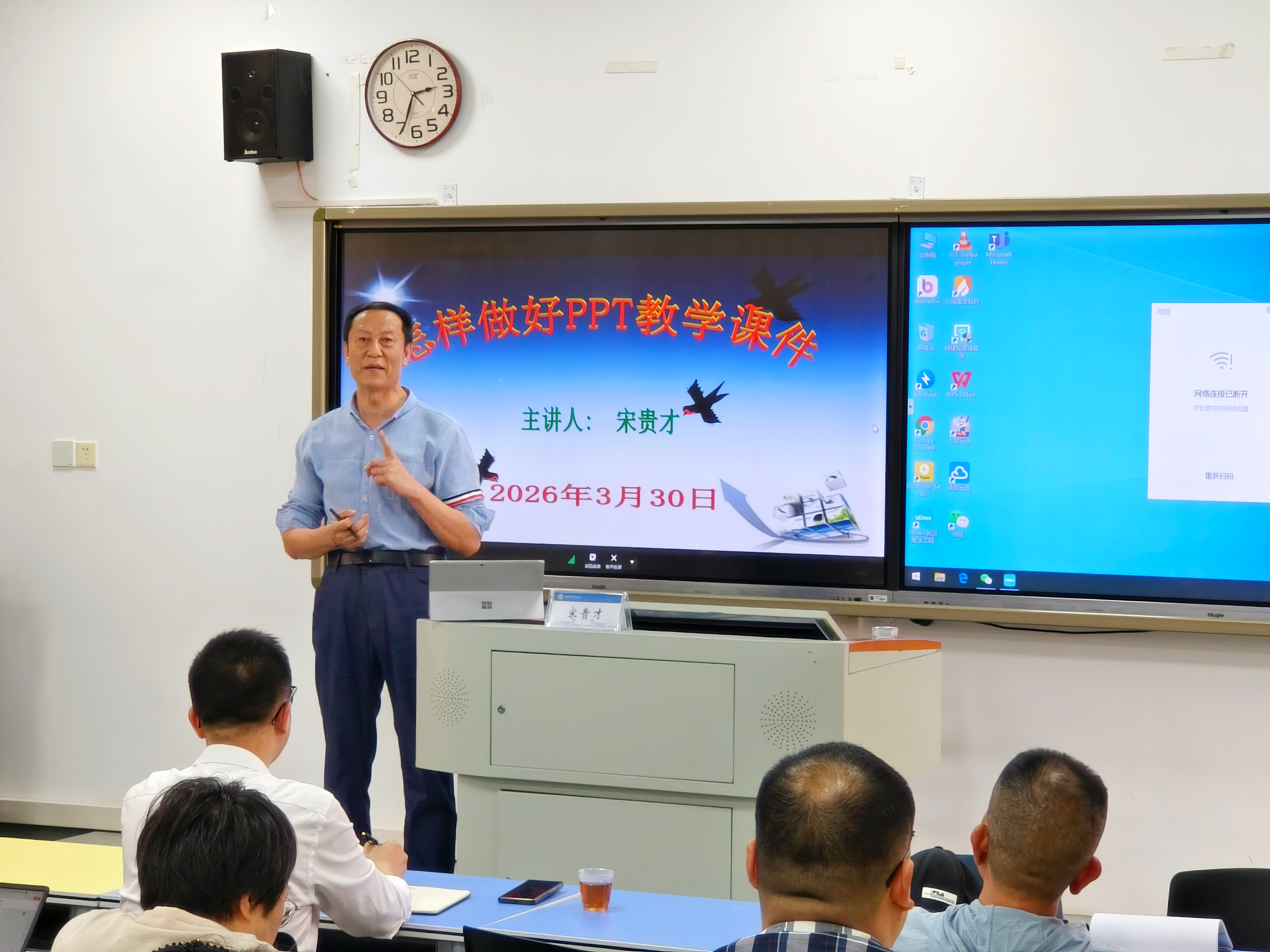 为进一步提高我院教师多媒体课件制作能力和说课能力,促进人工智能融入思政课建设,持续提升思政课教学质量,3月31日下午,校督导团团长宋贵才教授应邀在翔安校区3501智慧教室为我院教师开展题为“怎样做好PPT教学课件”的专题辅导,学院全体教师参加。