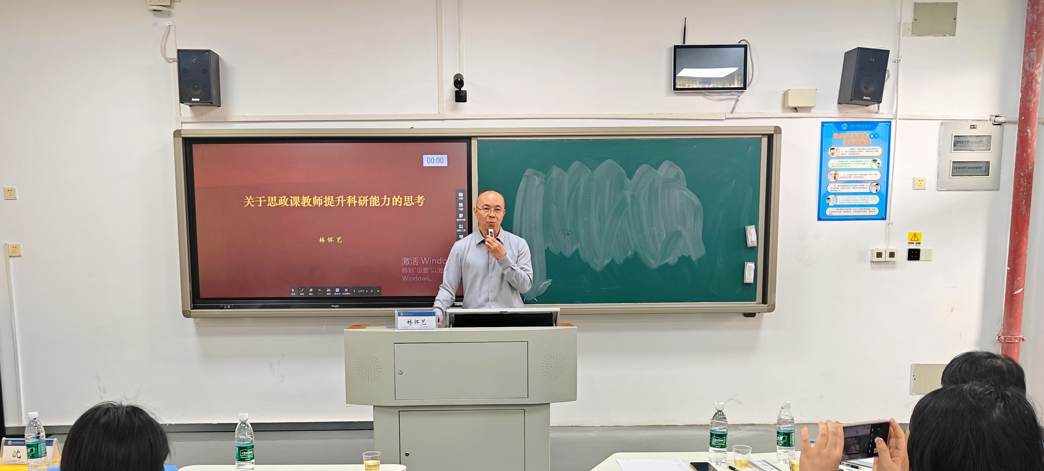 4月14日,由科融处、人事处和马院联合主办的科研能力提升专题学术沙龙在翔安校区1505教室顺利举办。华侨大学马克思主义学院教授、博士生导师林怀艺以“关于思政课教师提升科研能力的思考”为题作专题报告。我院副院长郑智超博士主持报告会,全体思政教师参加学习。(图文:林靖)