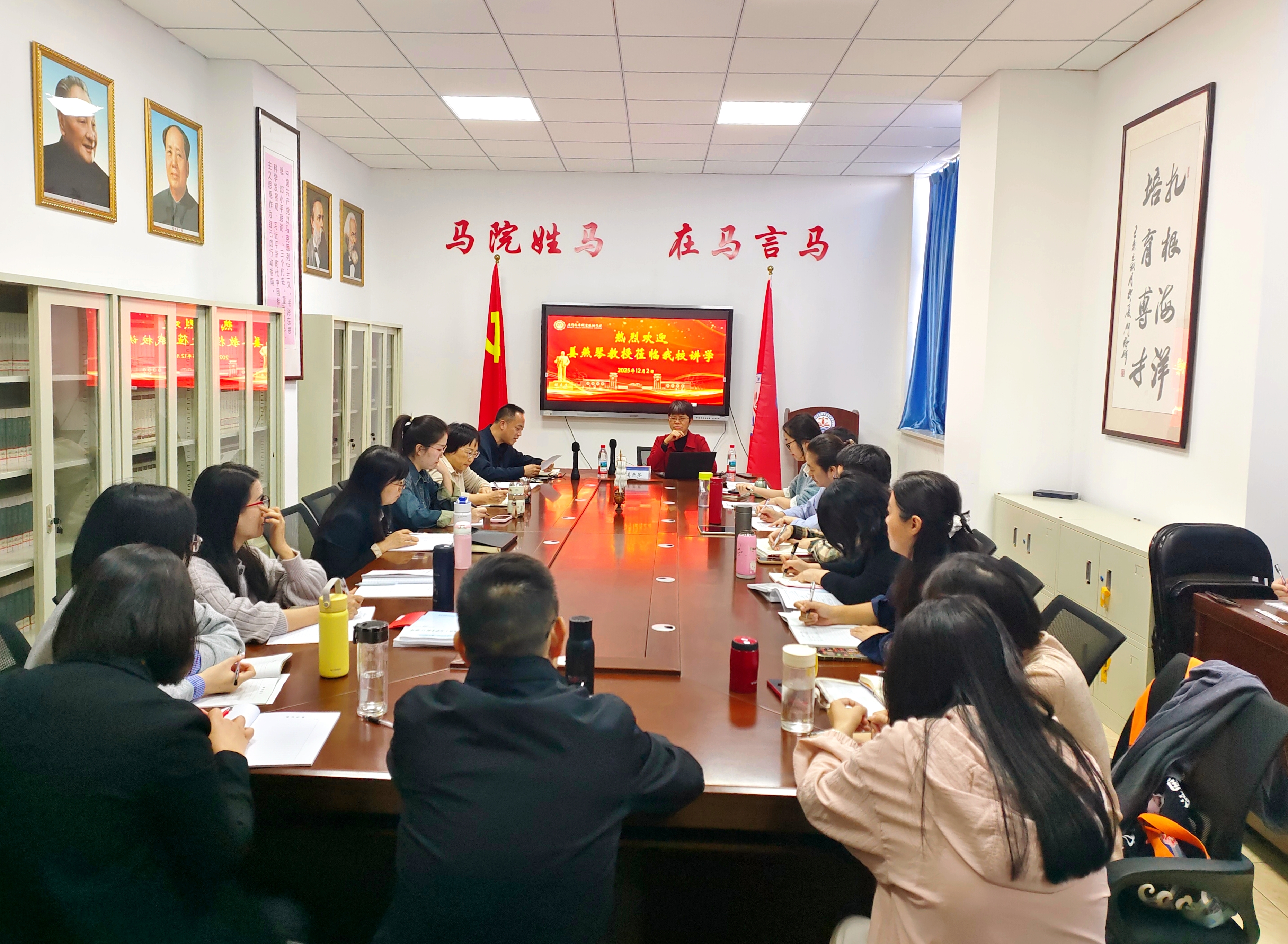 本次活动由马克思主义学院、教务处、人事处、赖蔚英名师工作室和沈红名师工作室联合举办,我院全体教师及思政工作教师代表参会。