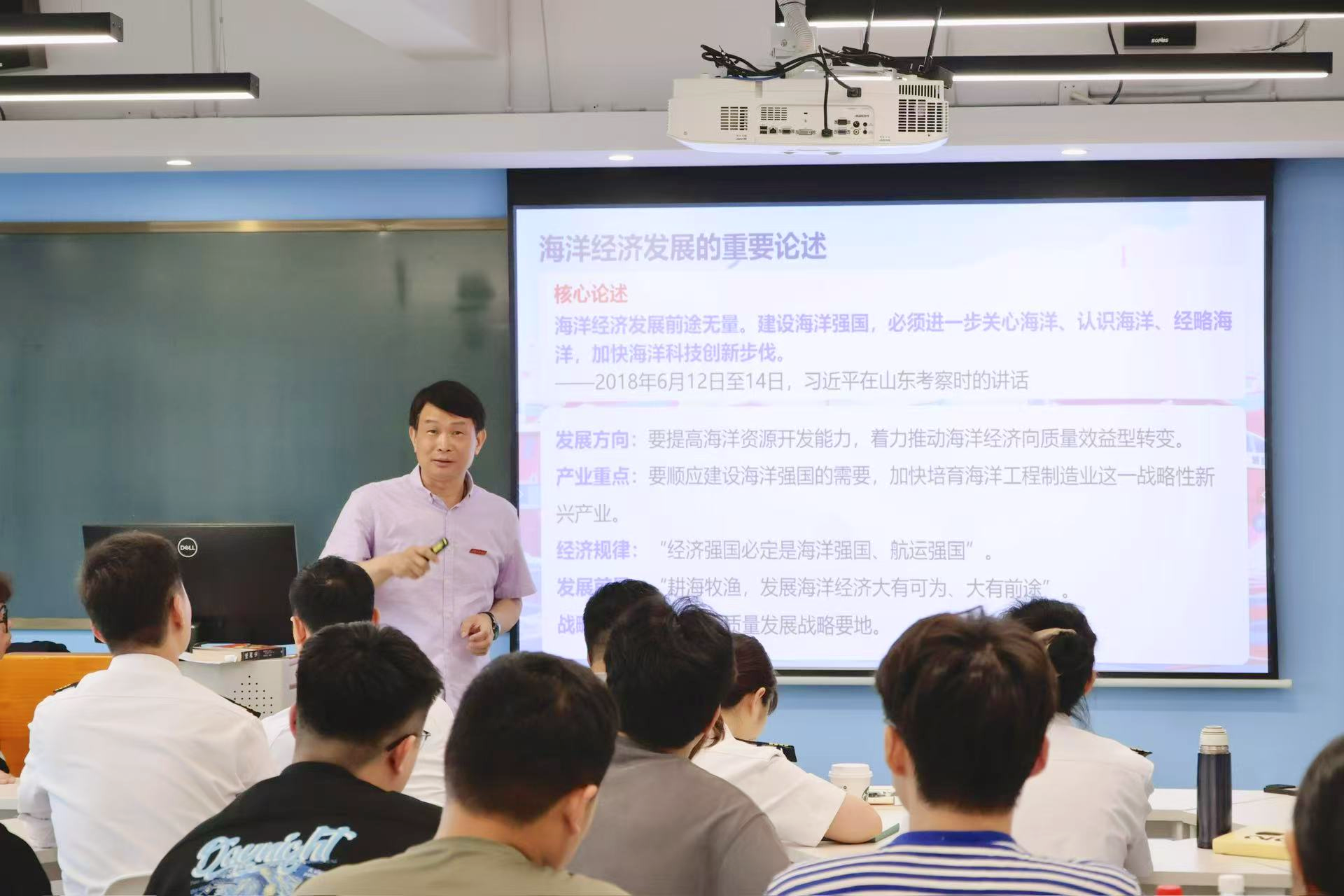 4月21日,校党委书记陈一端以"向海图强、逐梦深蓝:海洋强国建设的使命与担当“为题,在思明校区党建中心为轮机3242班讲授了一堂生动而深刻的思政课。他勉励同学们珍惜学习机会,练就过硬技能,从历史中汲取智慧,在现实中勇担使命,努力成长为高素质航海人才。(来源:小航之声)