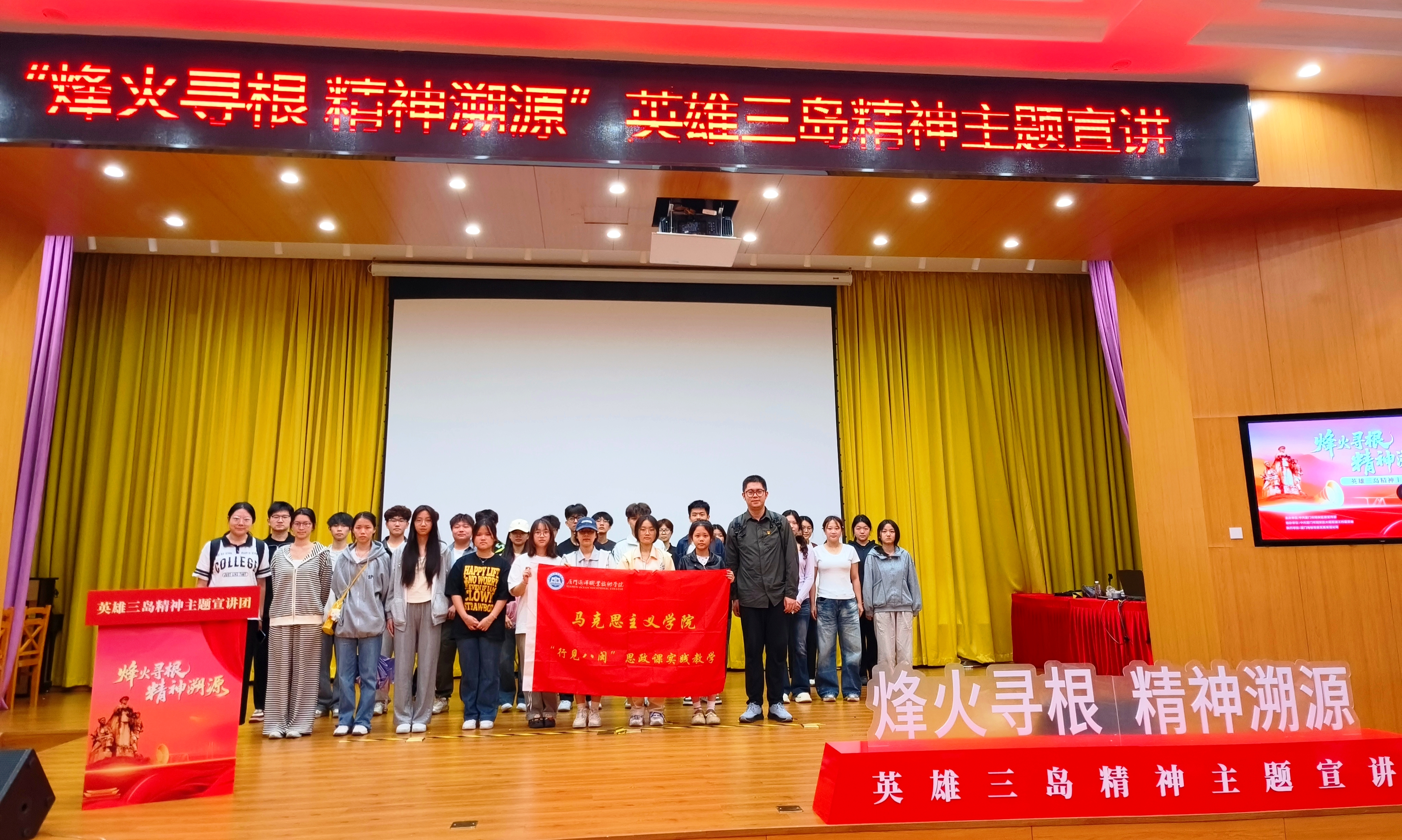 4月24日,由翔安区委宣传部主办“烽火寻根·精神溯源”英雄三岛精神宣讲系列活动在翔安区英雄三岛战地观光园正式启幕。以此活动为契机,我院副院长郑智超博士带领海洋生物学院、国际商贸学院的学生代表前往大嶝岛开展以“战地行走·思政浸润”为主题的“行见八闽”思政课实践教学活动,沿着“溯源—融合—践行—升华”脉络,现场感悟英雄三岛精神。(来源:业翔民安)