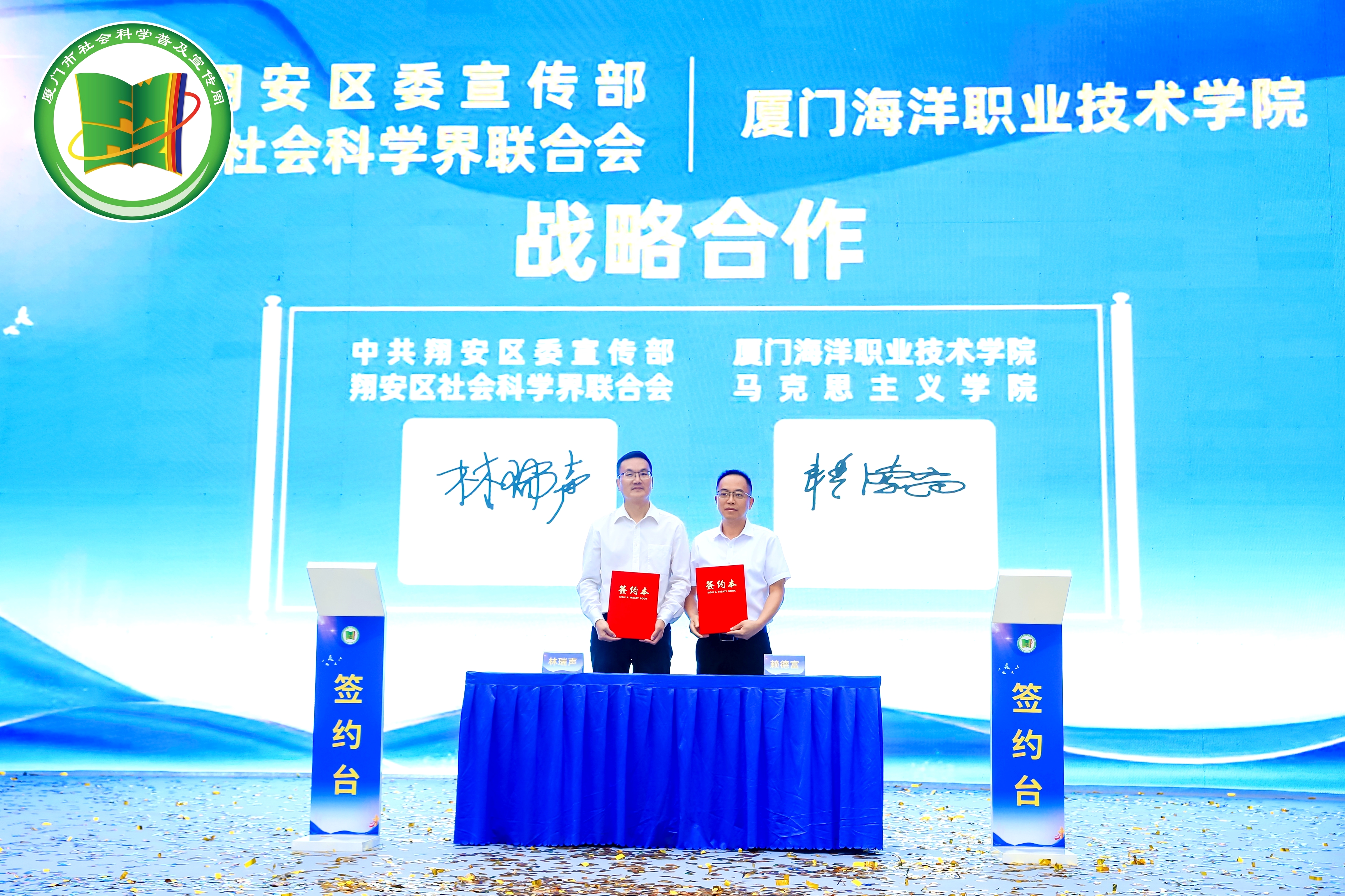 为深入学习贯彻习近平总书记对学校思政课建设作出的重要指示精神,落实我校与翔安区人民政府签署的全面战略合作协议,10月25日,中共翔安区委宣传部、翔安区社会科学界联合会与我校马克思主义学院部院共建战略合作签约仪式在翔安区法治文化广场举行,校党委委员、副校长倪辉出席签约仪式。