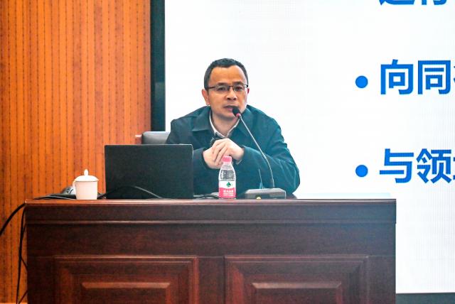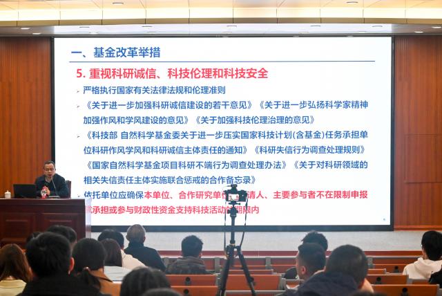 刘校长围绕科技强国战略目标,深入解读了新时代科学家精神内涵,以自身丰富的科研经历,重点从科研基金项目申报以及科研诚信的角度,勉励广大师生传承弘扬好科学家精神,崇尚科学、热爱科学,立志为党成才、为国奉献,做新时代科学研究的奋斗者、践行者和奉献者。他强调,学校要深入学习贯彻党的二十届三中全会精神,统筹推进教育科技人才体制机制一体改革,进一步提升科技创新能力,为科技强国建设贡献力量。青年学生要争做志存高远、心系家国的建设者,勇于创新、挺膺担当的奋进者,实事求是、抱诚守真的践行者,勇于创新突破,在中国式现代化的伟大征程中书写精彩的人生华章。