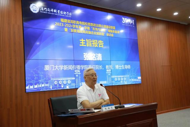 厦门大学新闻传播学院首任院长张铭清教授作“台海局势与两岸融合”主题报告,从历史、国际、国内等角度对台湾问题以及两岸关系进行了深入的剖析,结合党的二十大报告详细阐释了“一个中国”原则,并强调福建在贯彻新时代党解决台湾问题的总体方略中的定位、使命和任务,为思政课教师开展好《新时代党解决台湾问题的总体方略》集体备课提供了丰富的素材。