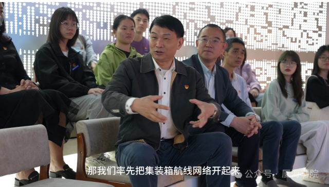 党委书记陈一端在“勇担当”主题教室向场师生讲授了习近平总书记在厦门工作期间“放水养鱼,激活厦门港”的故事,为大家带来一场精彩的“行走的大思政课”。陈书记的大思政课娓娓道来,饱含深情,使在场师生感受到习近平总书记在厦门工作期间勇于先行先试,探索推动一系列开创性改革举措的生动实践。