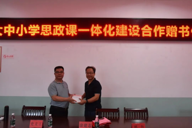 厦门海洋职业技术学院马克思主义学院和大田县教育局签署大中小学思政课一体化共建协议。签字仪式上,大田县教育局党组书记涂建志为本次活动致辞。涂建志书记就如何进一步推动大中小学思政课一体化建设发表了讲话,期望为全面提升各学段人才培养质量贡献力量。为加快推进大中小学思政课一体化建设合作,我院向大田县鸿图中学赠送校本文化读本《陈嘉庚和陈嘉庚精神》。