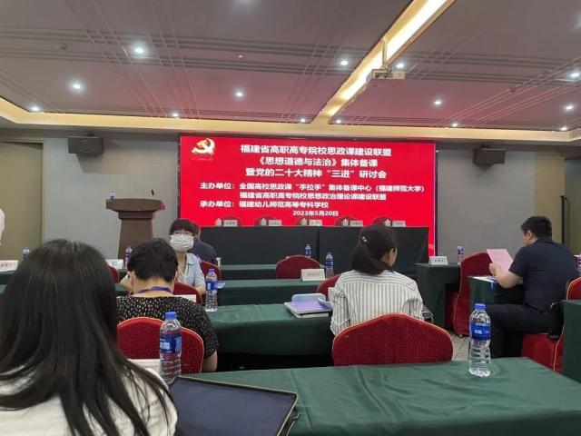5月20日,我院思想道德与法治教研室沈红、黄黇老师参加了福建省高职高专院校思政课建设联盟《思想道德与法治》集体备课慧暨党的二十大精神“三进”研讨会,会议由全国高校思政课“手拉手”集体备课中心福建师范大学与福建省高职高专院校思想政治理论课建设联名福建幼儿师范高等专科学校承办。