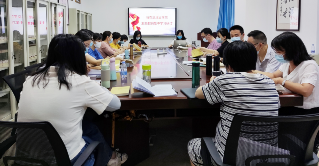 按照学习贯彻习近平新时代中国特色社会主义思想主题教育的部署安排,5月30日下午,马克思主义学院直属党支部进行主题教育第四次专题集中学习研讨,全体党员参会。本次学习研讨的主题是“实干担当促进发展——构建高质量教育体系,加快推进教育强省建设”,旨在深入学习贯彻党的二十大精神,把握教育历史定位,理解教育本质要求,将其转化为教育发展的生动实践,不断开创教育强省建设新局面。在学习研讨交流会之前,由郑昭华老师领读,全体党员对《习近平新时代中国特色社会主义思想专题摘编》、《习近平新时代中国特色社会主义思想学习纲要》以及《习近平著作选读》第一卷相关内容进行了自学。