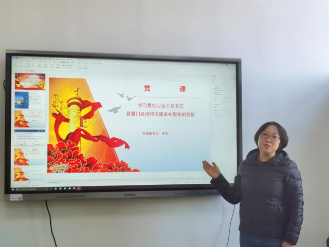 会上,支部副书记李东为全体党员上了一堂《学习贯彻习近平总书记致厦门经济特区建设40周年的贺信》的党课,带领全体党员学习习近平总书记贺信精神,并结合工作实际研讨贯彻落实举措。黄黇老师以厦门经济特区40年建设历程为脉络,为大家生动解读了特区精神的厦门演绎,厦门经济特区的成功实践生动印证着习近平新时代中国特色社会主义思想的真理力量。