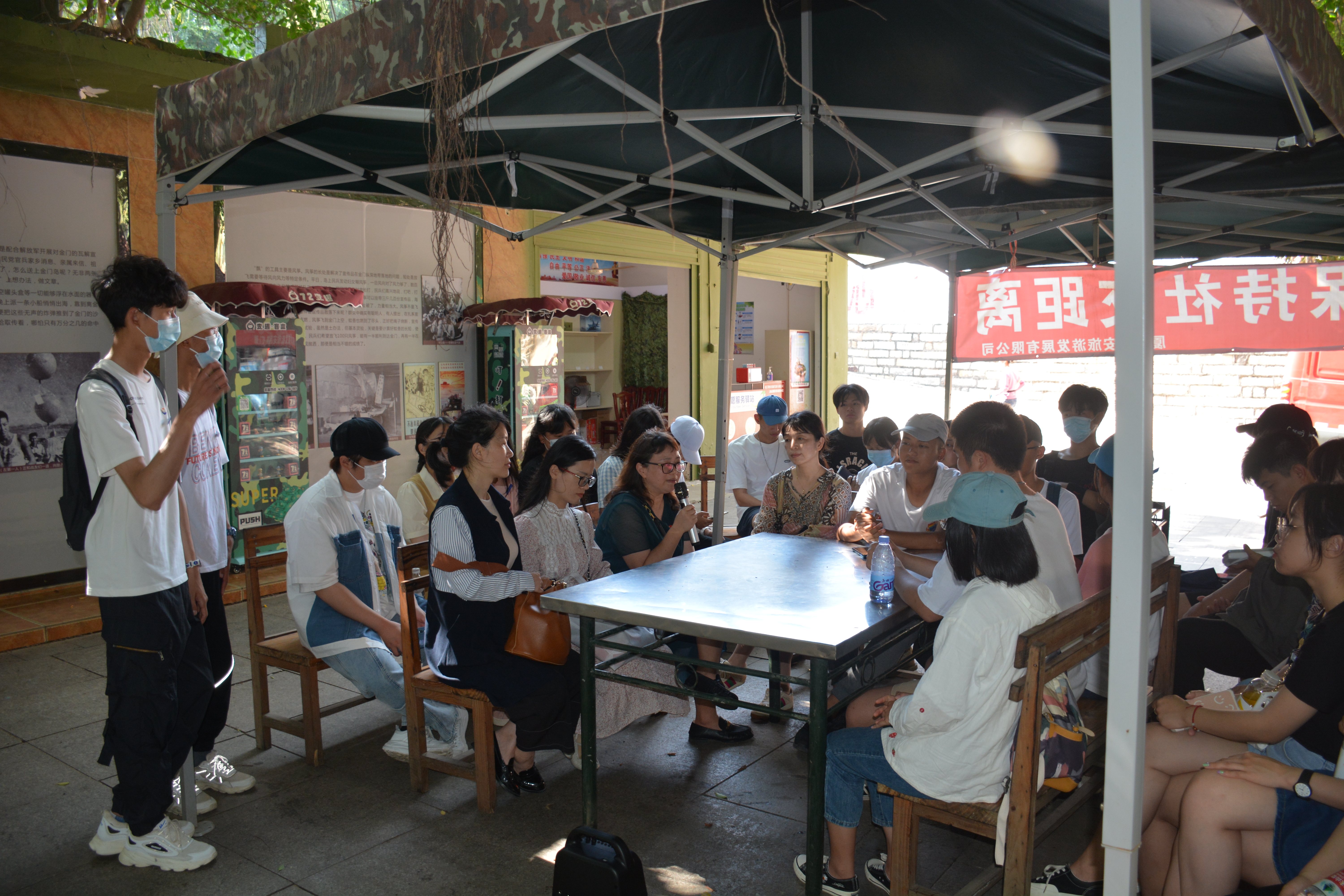 最后,刘慧文老师将思政课与“四史”进行结合作为活动总结,同学们围坐在大榕树下认真聆听,从中了解了党和军民为祖国统一而英勇奋斗的历史故事,重温两岸对峙的炮战中,大、小嶝军民用生命诠释的“艰苦奋斗、甘于奉献、不怕牺牲”的英雄三岛精神,再次领略了以毛泽东为首的中国共产党人高瞻远瞩的战略眼光和伟大胸怀。