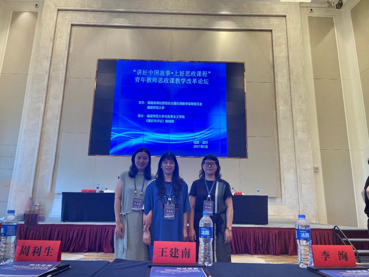 2021年5月15-16日,福建省高等学校思想政治理论课教学指导委员会和福建师范大学联合主办,福建师范大学马克思主义学院、《理论与评论》编辑部共同承办的“讲好中国故事•上好思政课程”青年教师思政课教学改革论坛在福建省福州市召开。福建师范大学马克思主义学院党委书记张爱民主持开幕式,福建省委教育工委副书记、省教育厅党组成员、一级巡视员王建南教授做主旨发言。马克思主义学院朱静蓓、刘慧文、王静受邀参会,与来自省内外多所高校的专家学者等两百余人相聚一堂,交流学习。