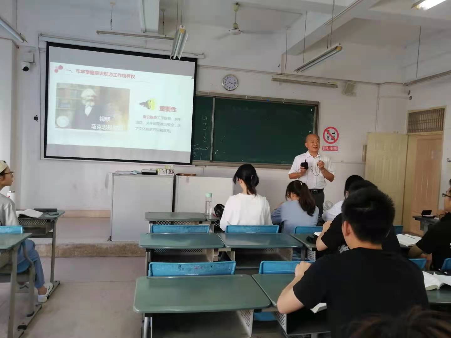 汤忠民在听课过程中不仅认真做记录,还积极参与到课堂中,在课堂上,当李东老师讲到牢牢掌握意识形态工作领导权时,汤副书记结合自己的实际工作和同学们分享了意识形态工作的重要性,最后他谈到每个人对事物的看法不一样,就会形成不同的意识,但作为新时代的大学生,一定要坚持党的领导、坚持马克思主义信仰,积极践行社会主义核心价值观,多参加学校组织的各项公益活动。