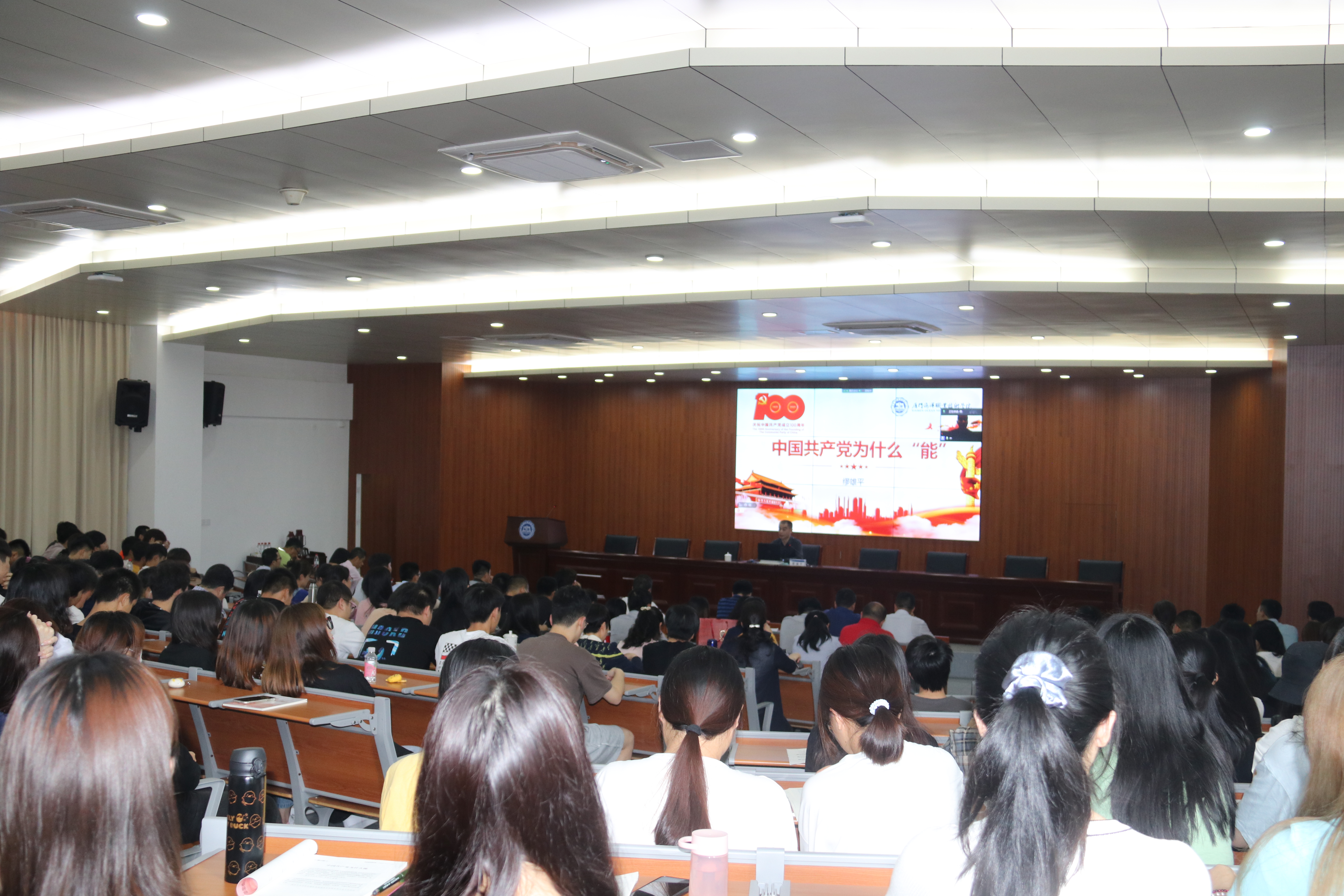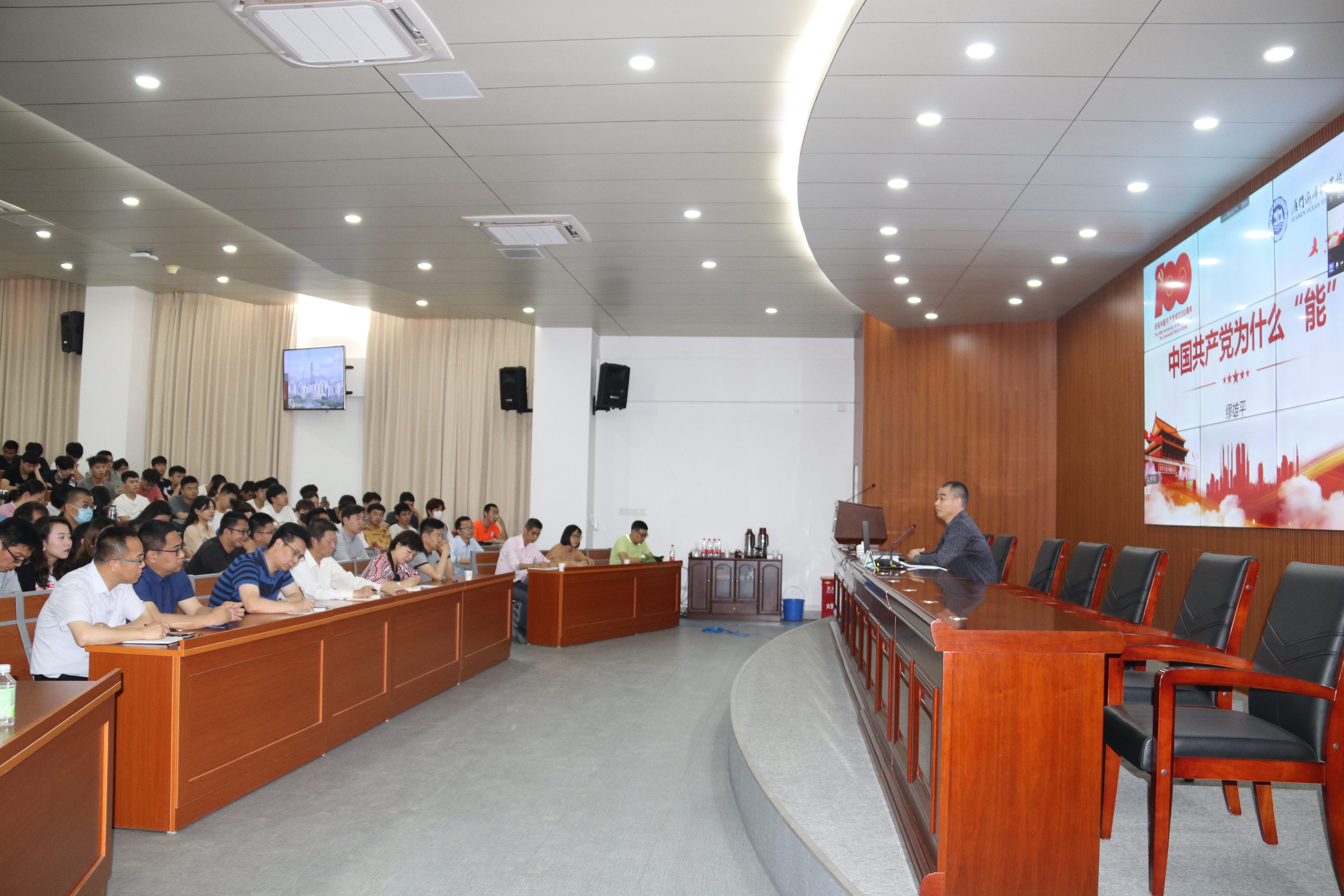 ​      4月13日下午,校党委委员、纪委书记缪雄平为翔安校区师生上《中国共产党为什么能》形势与政策课。