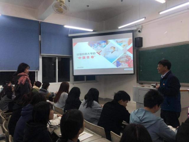12月14日晚,学校党委委员、副校长孙学耕以“读懂‘抗疫’大考的‘中国答卷’”为题,为国际商贸学院旅游管理3201、3202班学生讲授了一堂内容丰富、意义深刻的形势与政策课。
