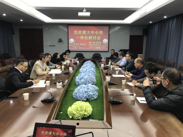 会议围绕“研讨第二集美学村作为我校校外思政课老师研修基地建设和学生社会实践基地”、“研讨大中小学思政课一体化建设,推动习近平新时代中国特色社会主义思想“三进”,切实提高学校思政课教学质量”、“大田共建,海院能为你们做什么”、“抗战中中国航海教育的发展”、“思政课观摩课”等议题展开研讨。