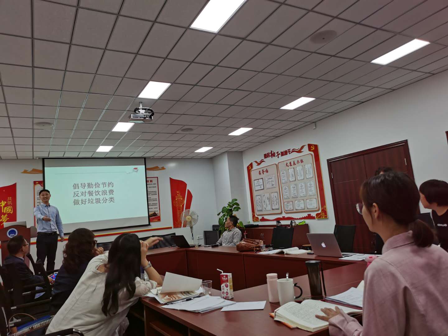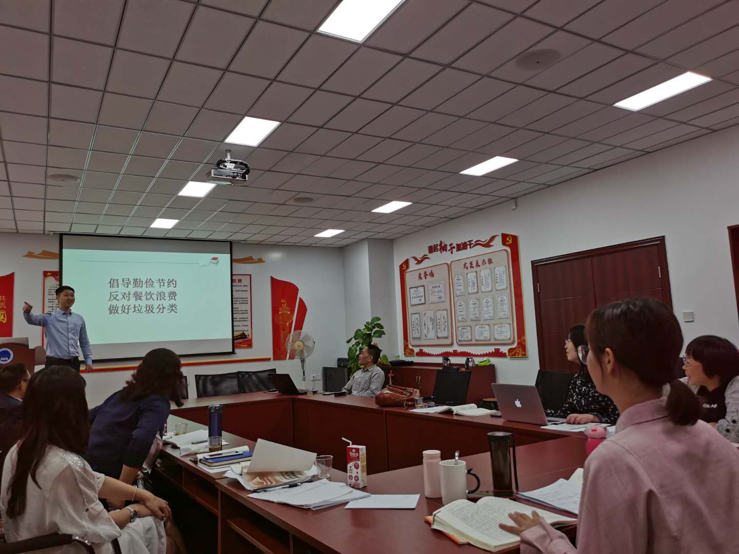 集体备课会上,胡啸尘老师以“倡导勤俭节约反对浪费”为主题开展集体备课,他分享了教学设计、讲授思路、授课课件和相关视频等材料,他们详细介绍了各自教学的基本内容、脉络结构、呈现方式、重点难点和存在的问题。
