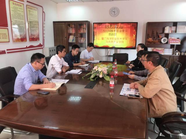 11月4日,江西应用技术职业学院思政部主任赵金洪一行四人来校学习交流思政课改革创新、线上开放精品课程建设等事宜。马克思主义学院院长林杰钦主持交流座谈会。