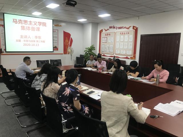 10月13日,马克思主义学院开展《思想道德修养与法律基础》和《形势与政策》系列集体备课活动。马克思主义学院全体教师参加活动。