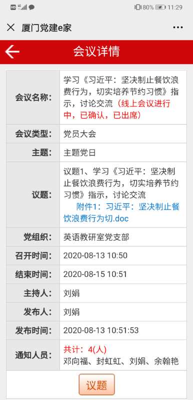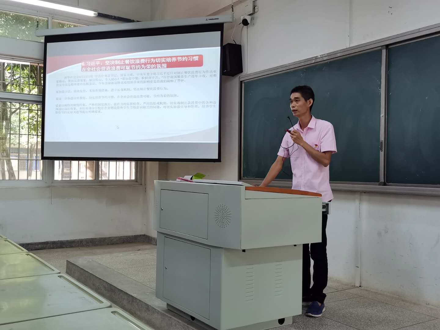 2020年9月15日,马克思主义学院与公共教育学院党总支召开全体教师大会传达学习习近平总书记对制止餐饮浪费行为作出的重要指示。会上,党总支书记林杰钦就开展学习贯彻习近平总书记重要指示进行部署。他要求全体教师要把思想和行动统一到习近平总书记的重要指示精神上来,自觉将勤俭节约、艰苦奋斗的理念内化于心、外化于行,从自身做起、从现在做起、从点滴做起,争做健康餐饮、文明生活的倡导者,传承美德、弘扬新风的推动者。党总支印发通知,就进一步贯彻习近平总书记重要指示做出具体安排,各党支部通过“三会一课”、主题党日等形式,组织开展“光盘行动、从我做起”等形式多样的主题宣传教育活动,教育引导师生爱粮节粮、抵制浪费。