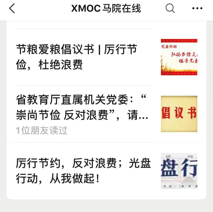 (三)充分利用微信公众号等宣传载体,发出倡议书、营造“浪费可耻、节约为荣”良好氛围。发挥第二课堂的教学优势,网络课堂教学与校外实践教学相结合,倡导节俭,反对浪费。不断丰富网络教学资源,开辟“厉行节约,反对浪费”专栏,将有关中央文件、政府行为、社会典范、名人轶事发布网上,通过网络课堂增强对学生的影响力。