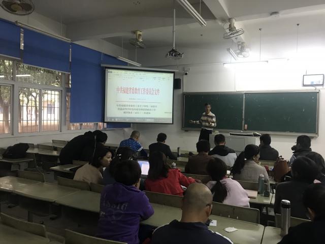 12月4日下午,基础部党总支召开全体教师大会,传达学习《国家职业教育改革实施方案》和《福建省普通高等学校党的建设和思想政治工作测评体系(试行)》通知精神,研究贯彻部署意见,党总支书记、基础部主任叶小超主持会议并讲话,基础部、思政部全体教师出席会议。
