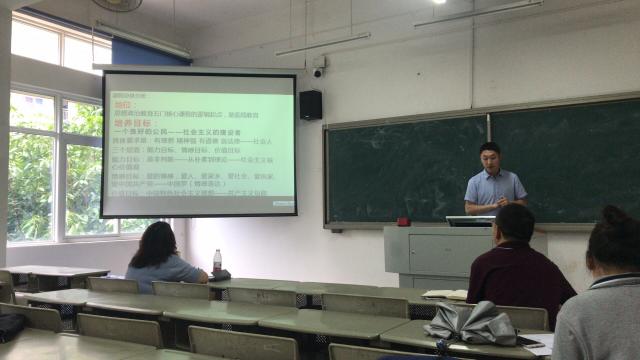 形势与政策教研室邓力老师从课程定位与教学目标、教学组织、学生学法、评价考核、教学反思与探索等五个方面对《形势与政策》课的课程教学进行了解读与说明。他通过课程定位的分析阐释了“形势与政策”课的重要性;他从学情分析入手,介绍和分享了提高该门课程实效性的教学方法。思政教研室的胡啸尘老师从课程总体分析、教学对象分析、教学设计思路分析、教学具体设计分析等几个方面对《思想道德修养与法律基础》课的课程教学进行了解读,强调在教学中要突出学生主体地位,在互动中培养学生的爱国主义情操,坚定理想信念的自觉。