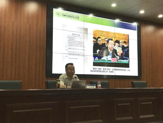 王学利教授,作为今年3月18日在学校思想政治理论课教师座谈会上的八个发言代表之一,代表全国职业院校向习近平总书记汇报了高职思政课建设情况,他的报告对于我院思政课的改革创新具有启发和激励作用。