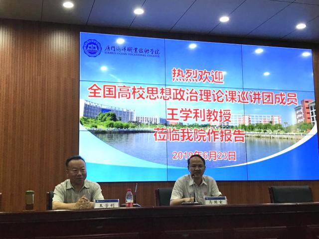 6月23日上午,教育部“全国高校优秀思想政治理论课示范课百人巡讲团”成员、全国高职高专院校思想政治理论课建设联盟副秘书长、2017年度全国最美思政课教师称号获得者王学利教授,应邀莅临我院作《学好思政课,做高素质劳动者和技术技能型有用之才》专题报告。学院副院长马国玄出席报告会。