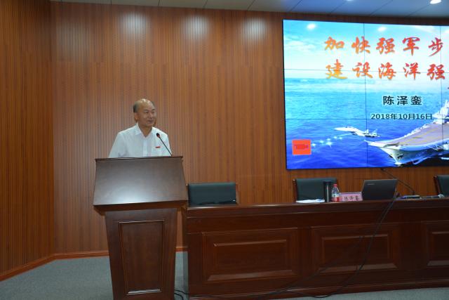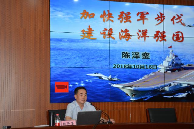 陈泽銮教授结合自身30余年的从军经历,以"加快强军步伐,建设海洋强国"为主题,从我国征服海洋的历史壮举、海洋强国面临的形势、建设海洋强国的主要战略任务、强军兴军建设与海洋强国相适应的武装力量四个方面展开报告,为广大师生上了一堂生动的爱国主义国防教育课。陈泽銮教授精彩的报告,让师生们受益匪浅,进一步增强了师生们热爱海洋、保护海洋的意识。激励着广大海院学子努力学习海洋知识,了解海洋形势,成为海洋人才,为建设我国的海洋强国梦贡献自己的力量。