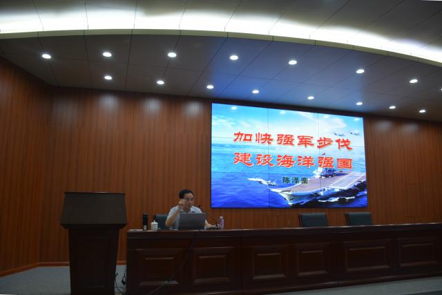 陈泽銮教授的报告主题为《建设海洋强国》,从我国海洋辉煌与屈辱的历史、建设海洋强国面临的形势、建设一支与海洋强国相适应的武装力量三个方面展开,为广大师生上了一堂别开生面的爱国主义国防教育课。调动师生对了解海洋形势的积极性,增强保护海洋的意识。