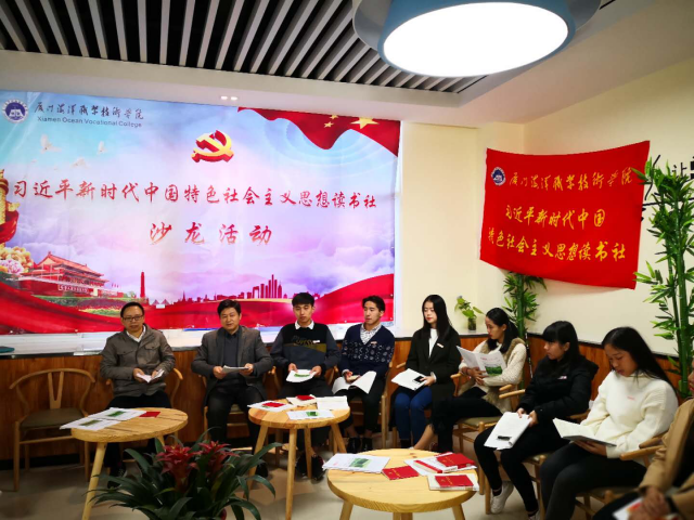 为促进全院青年学生学习十九大精神的热潮,充分发挥习近平新时代中国特色社会主义思想读书社的理论学习先导作用,2018年1月5日下午,习近平新时代中国特色社会主义思想读书社在图书馆大厅开展了一场学习交流沙龙活动,同时福建省教育电视台对此次沙龙活动进行了全程拍摄采访。
