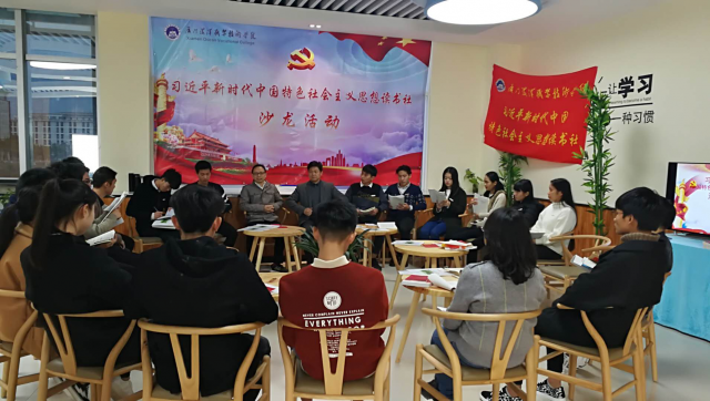沙龙活动由思政部主任王斌主任主持,思政教研室主任周志勇老师,思政部专兼职教师,习近平新时代中国特色社会主义思想读书社成员、青马社和宣讲团代表共计20余人参加此次沙龙。沙龙活动主要由内容学习、现场交流、总结发言几个部分组成。