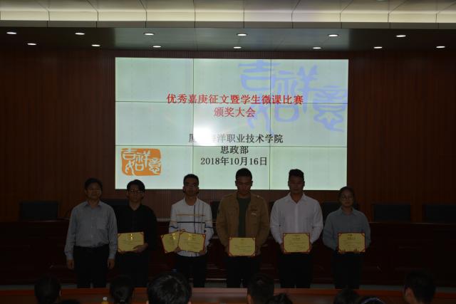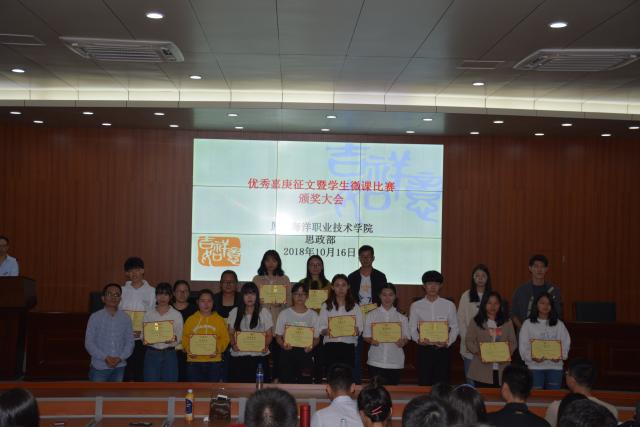 2018年1月16日下午,思政部在学院翔安校区报告厅召开了表彰大会,对在16、17级学生嘉庚征文竞赛和17级学生微课教学比赛活动中获得优异成绩的学生进行表彰。每年在大一新生中开展嘉庚征文竞赛活动,对于同学们了解“校主”嘉庚生平,理解嘉庚品格,弘扬嘉庚精神非常有意义。在大一新生中开展学生微课教学比赛活动是我院思政部思想政治理论课教学改革的积极探索,对于培育大学生的自主学习能力、创新意识和协作精神极有帮助。