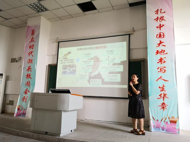 在讲座上,袁华副教授首先向我们展现了一个“正在经历百年未有之大变局”的当今世界,她强调,对于新时代的中美关系的探讨要置于这个大背景下展开。紧接着,她回顾了40周年中美关系的演变,分析了中美关系面临的挑战,并指明了中美建交40周年带来的的深刻启示,让现场观众们从多角度、多层次认识了新时代中美关系。整场讲座内容丰富、条理清晰又精彩纷呈,令在场老师如“柳暗花明又一村”般受益匪浅,更令在座学生如“两耳重闻窗外事”般醍醐灌顶。袁华副教授的讲座对我院《形势与政策》课程的开展具有重要的指导作用和借鉴意义。