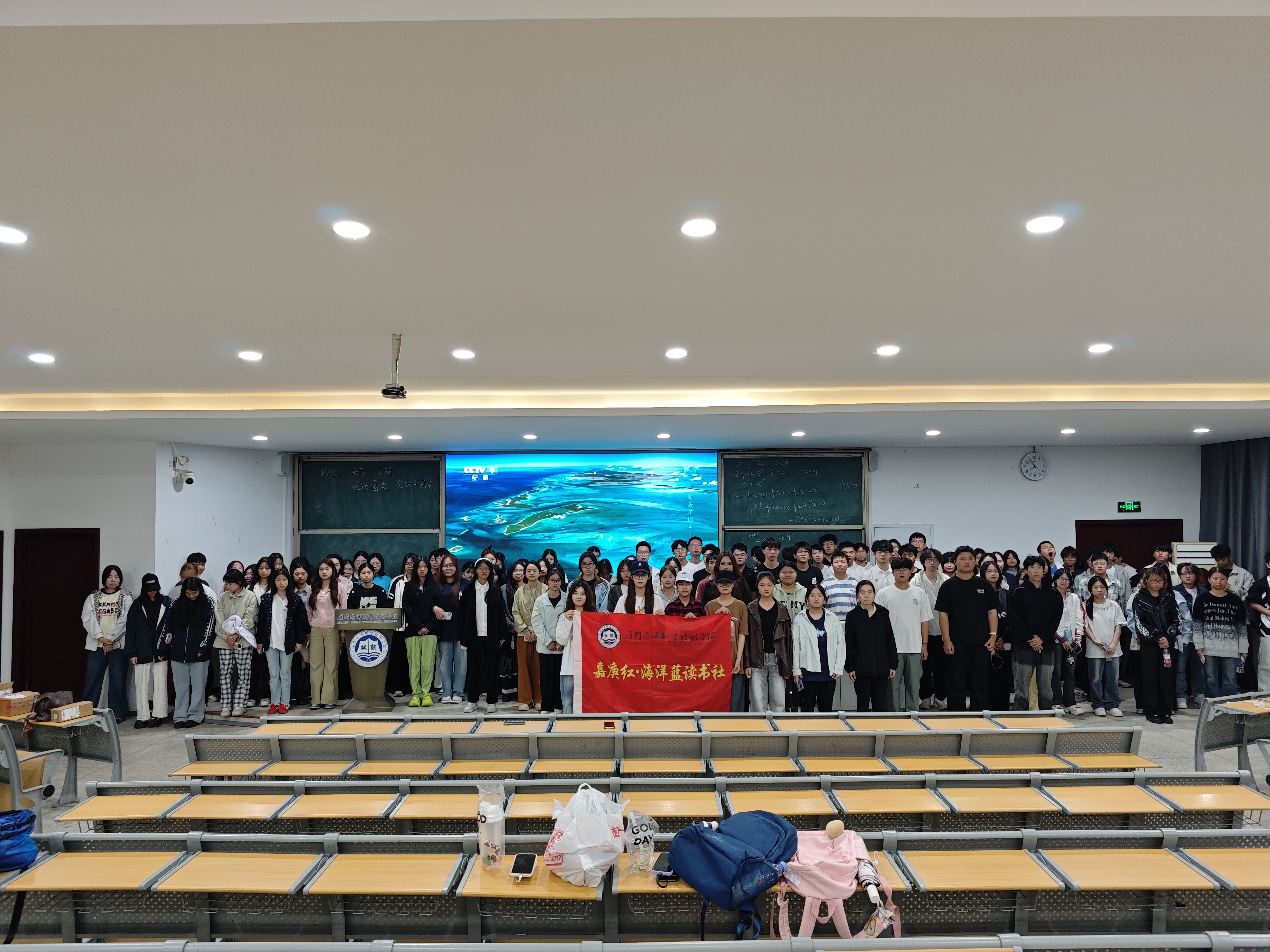 11月14日,“嘉庚红・海洋蓝”读书社举办“厦门国际海洋周观影活动”,活动由朱晗茜、陈雅彬、杨诗颖共同主持。活动现场,社员集体观看海洋主题纪录片《完美星球——海洋》,观影结束后,主持人围绕厦门国际海洋周的举办背景、核心主题展开讲解,同步普及海洋生态保护相关知识,引发社员们的热烈讨论与深度思考。