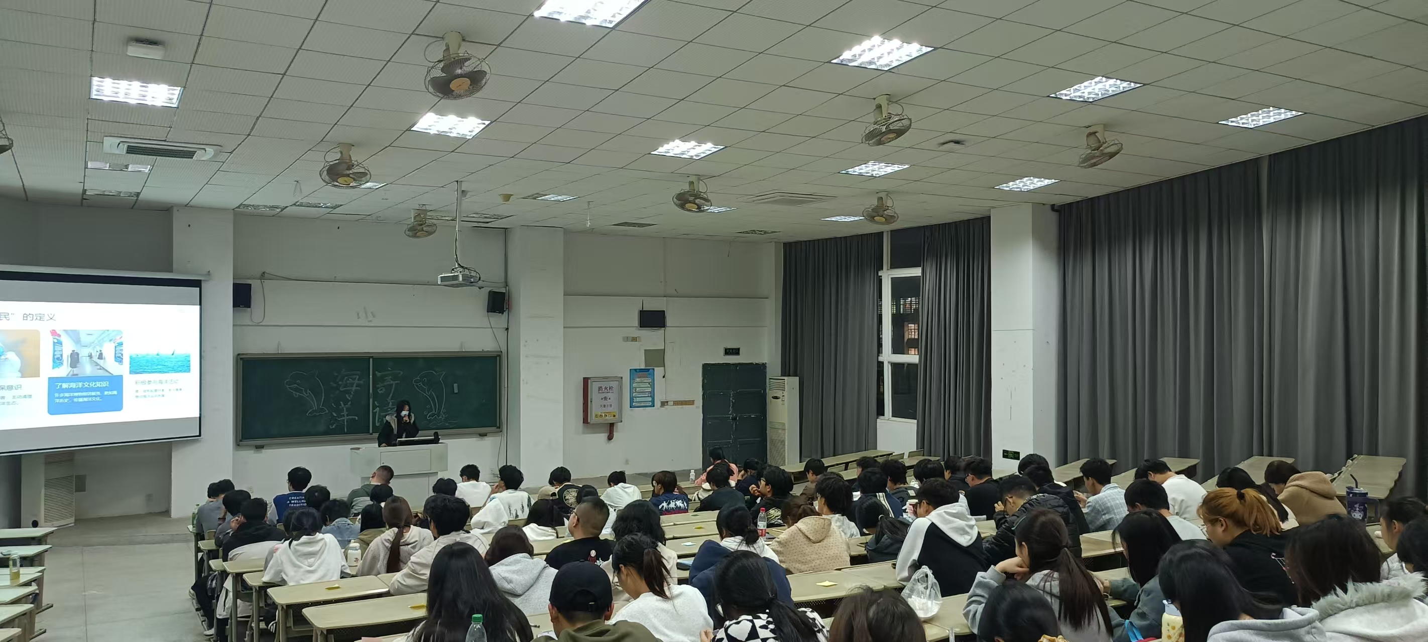 12月3日晚,读书社开展了“观影知海,行动护海——蓝色市民启航活动”,活动由林佳铭主持。本次活动以“知识+行动”为核心,设置答题签到、观看纪录片《自然中国之向海而行》、海洋知识问答、护海理念讲解等多个环节,最后引导在场学生签署“蓝色市民三日挑战”承诺卡。此次活动将海洋保护理念转化为可落地的日常行动,推动学生从海洋保护的“旁观者”转变为“参与者”,进一步深化了青年群体的海洋保护意识,为海洋生态的可持续发展注入了青春动能。