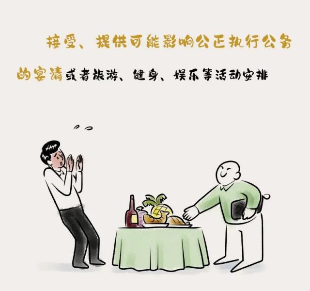第一百零一条接受、提供可能影响公正执行公务的宴请或者旅游、健身、娱乐等活动安排,情节较重的,给予警告或者严重警告处分;情节严重的,给予撤销党内职务或者留党察看处分。