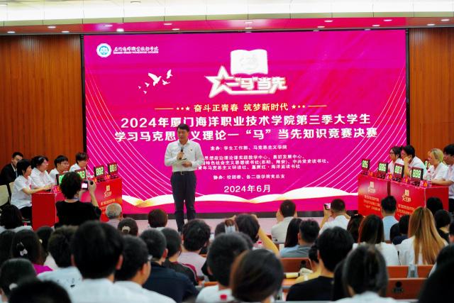 6月4日,由学生工作部、马克思主义学院主办,思想政治理论课实践中心、易班发展中心及各思政理论读书社联合承办的校第三季大学生学习马克思主义理论“一‘马’当先”知识竞赛决赛在翔安校区梯二报告厅成功举行。校党委书记陈一端、校党委委员、副校长马国玄,学生工作部部长林玉媛、宣传部副部长胡啸尘、马克思主义学院院长赖德富以及各二级学院学生工作负责人出席活动。