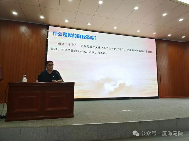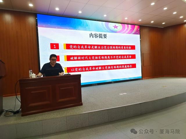 5月7日下午,为进一步推动党纪学习教育走深走实,马克思主义学院召开直属党支部扩大学习暨专题辅导报告会,邀请厦门大学马克思主义学院郑智超博士作客嘉庚大讲堂作《以党的自我革命破解大党独有难题》的专题辅导讲座。马克思主义学院党员教师、学校机关党总支党员干部、学生代表等参加学习。