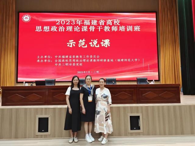 根据《中共福建省委教育工委关于组织开展2023年福建省高校思想政治工作骨干培训班的通知》等文件精神和学校要求,我院选派教师代表沈红、王靓靓、杨秀兰于7月5日—9日赴三明市委党校参加由省委教育工委主办、全国高校思想政治理论课教师研修基地(福建师范大学)、三明市委党校承办的2023年福建省高校思想政治理论课骨干教师培训班。共有来自全省各高校的272名思政课骨干教师参加培训。