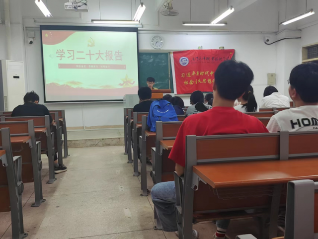 中国共产党第二十次全国代表大会已胜利闭幕。习近平新时代中国特色社会主义思想读书社的社员们欢欣鼓舞,纷纷表示要认真学习党的二十大报告全文,深入学习党的二十大精神。11月10日晚,我校习近平新时代中国特色社会主义思想读书社在思明校区开展集体学习活动,学习主题为“学习二十大,听党话、跟党走”。