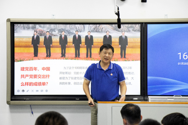 课堂上,孙副校长带领同学们回顾了党的百年奋斗史和光辉历程。从建党到革命,从建设到改革,特别展现了中国共产党一百年来为中国人民谋幸福,为中华民族谋复兴的使命和担当,内容涵盖全面,课堂生动精彩。孙副校长鼓励同学们要珍惜福建深厚的红色底蕴,传承好红色基因,发扬好红色精神。同学们全神贯注,听得津津有味。