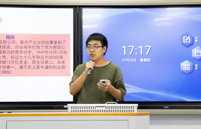 随后,同学们分成4组讨论本节班会的所学所思所悟,每组代表上台发言,交流心得。同学们从爱国、勤学、感恩、奉献等方面抒发感悟,赢得阵阵掌声。