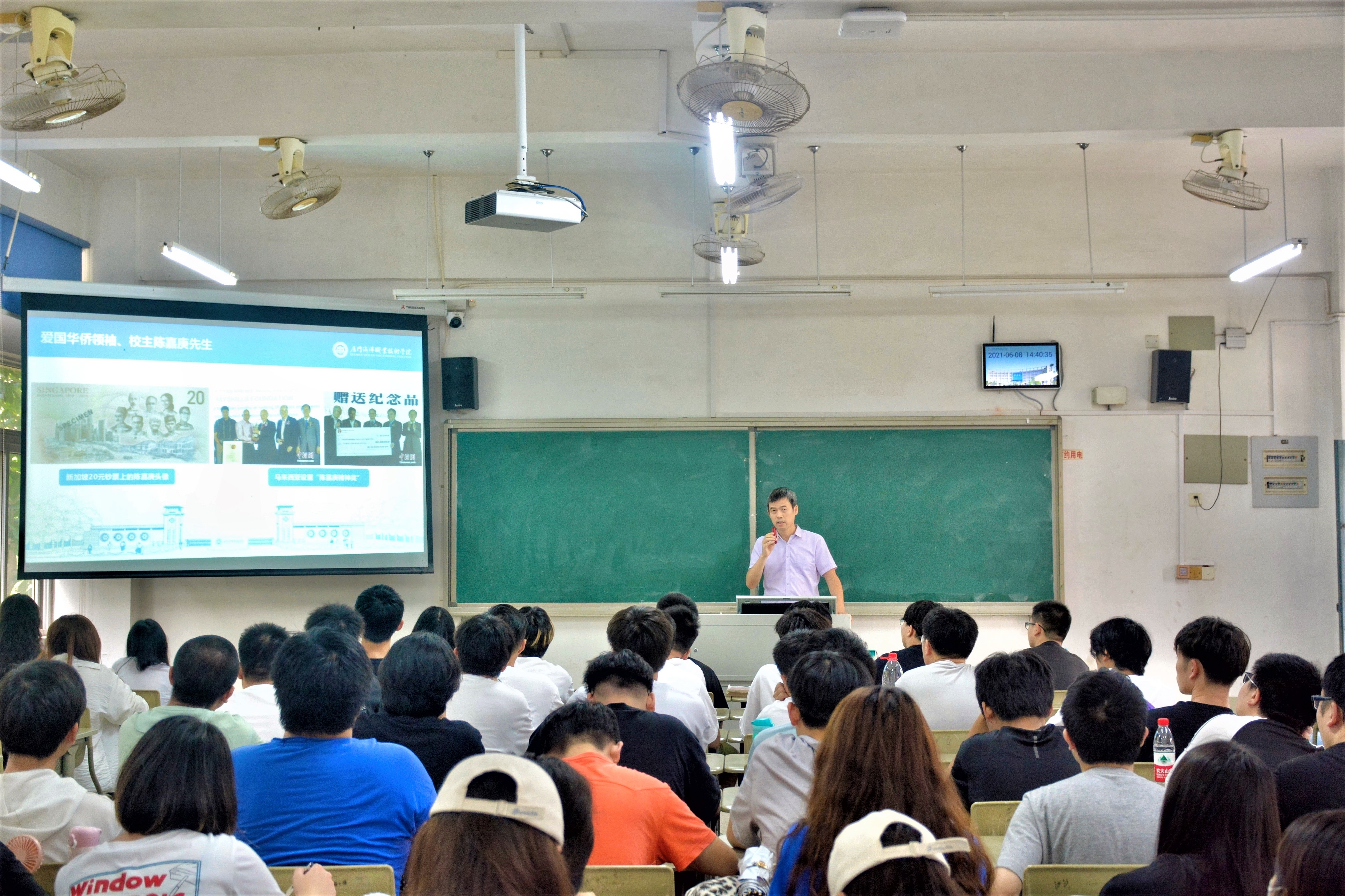课上,陈昌萍通过担任校长以来的亲身经历分享了自己对著名爱国华侨领袖、我校校主陈嘉庚先生及其“嘉庚精神”的认识和感悟。他从“南洋巨商,矢志报国”“倾资兴学,培育英才”“纡难救国,民族之光”“共商国是,建设桑梓”“拳拳诤友,肝胆相照”“嘉庚精神,永放光芒”6个方面,生动展示了陈嘉庚先生在商业、教育、政治、社会活动等方面的重要事迹,系统介绍了我校的办学历史和办学特色,着重讲述了陈嘉庚先生与中国共产党的历史情谊。