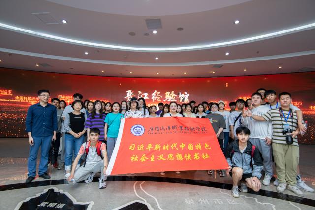 4月22日,学校习近平新时代中国特色社会主义思想读书社、嘉庚精神读书社、青马社、中共党史读书社社员在马克思主义学院教师的带领下前往福建省党史学习教育参观学习点—晋江市展馆参观学习。该展馆以时间为主线,通过“历史背景、经验提出、践行发展、传承创新”四部分全面展示晋江经验的形成发展过程,解读晋江经验的深刻内涵。