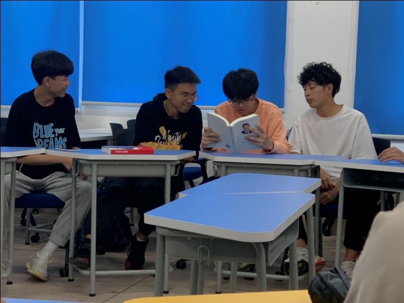 此次读书会恰逢五四青年节来临之际,为纪念五四运动、弘扬五四精神,读书社成员和指导教师李东一同诵读了《习近平谈治国理政》第三卷中的《发扬五四精神,不负伟大时代》,“青年是整个社会力量中最积极、最有生气的力量,国家的希望在青年,民族的未来在青年。今天,新时代中国青年处在中华民族发展的最好时期,既面临着难得的建功立业的人生际遇,也面临着“天将降大任于斯人”的时代使命。新时代中国青年要继续发扬五四精神,以实现中华民族伟大复兴为己任,不辜负党的期望、人民期待民族重托,不辜负我们这个伟大时代。”