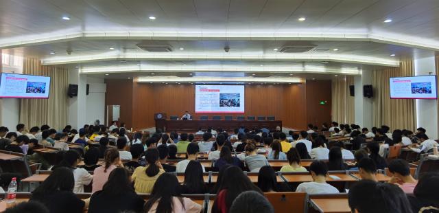 马克思主义学院全体教师、习近平新时代中国特色社会主义思想读书社、嘉庚精神读书社、青马社、中共党史读书社社员及其他学院师生代表200余人到场聆听。